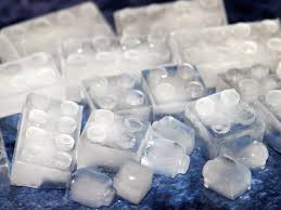 ونملؤها بالماء ثم نغمر فيها قطعة من الجليد ولكى لا تطفو فوق الماء (الجليد اخف